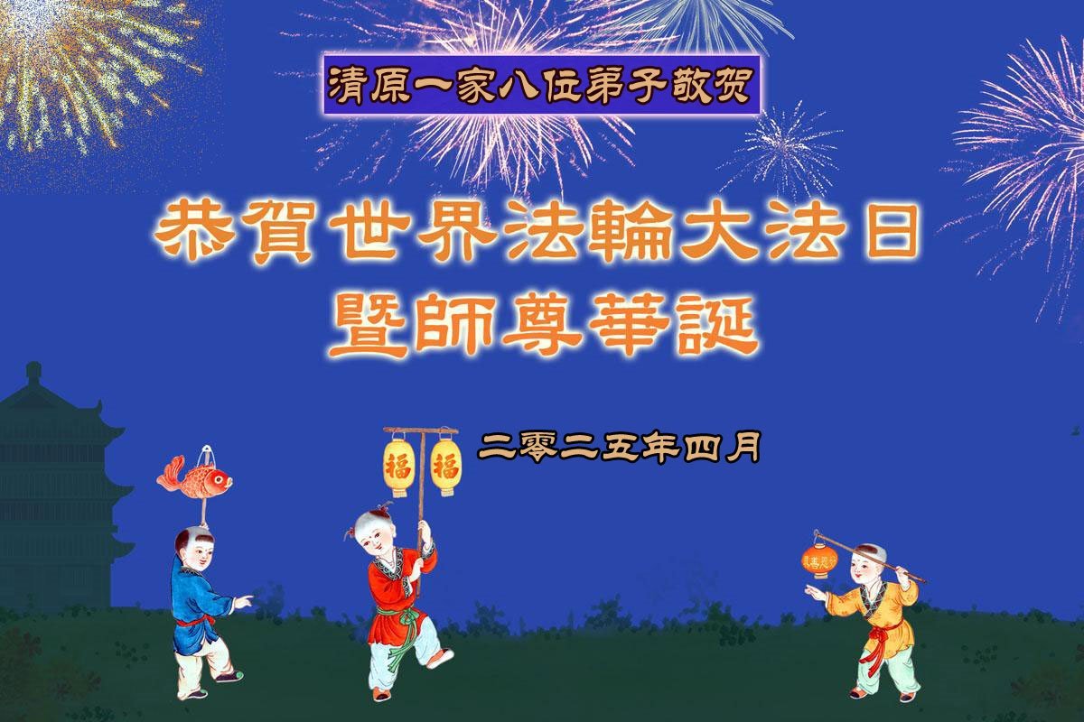 辽宁省鞍山市一家大法弟子及全家人恭贺世界法轮大法日!恭祝师父生日快乐!