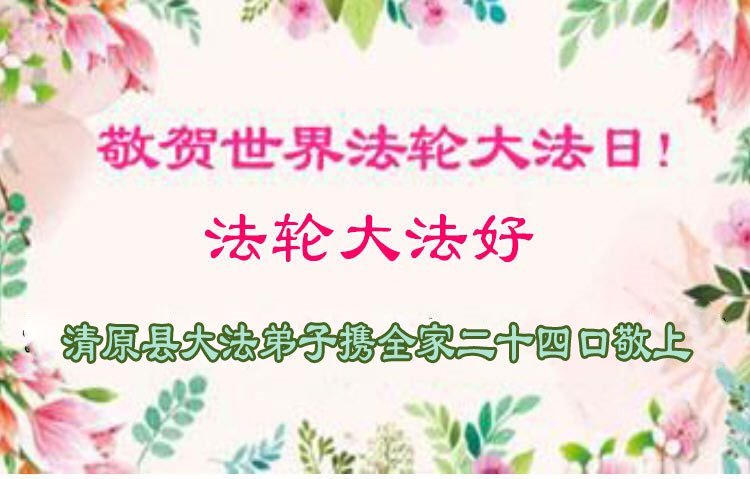 辽宁省清原县一大法弟子携全家人恭贺世界法轮大法日暨师尊华诞!