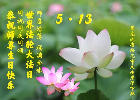 恭祝师尊生日快乐!普天同庆5.13世界法轮大法日! 黑龙江省七台河市勃利县大法弟子敬上 黑龙江省绥化市一大法弟子恭贺世界法轮大法日暨师尊华诞!