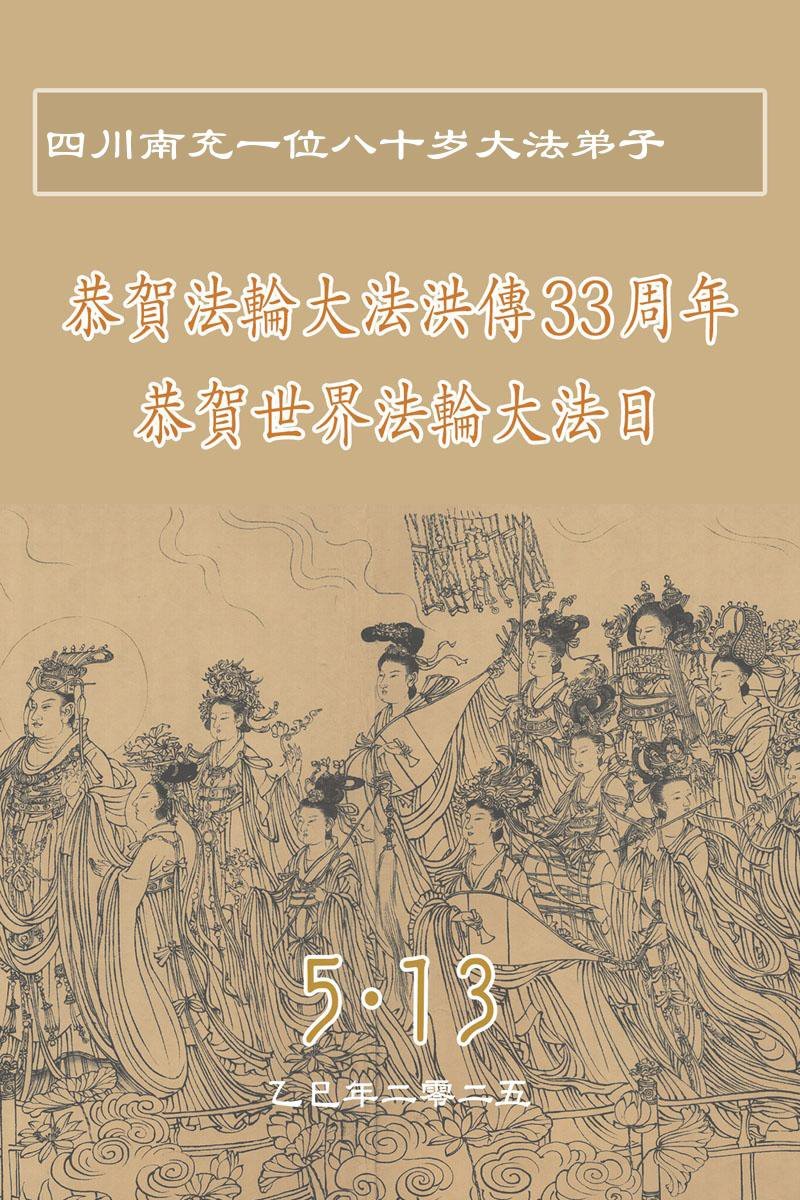 师尊您好!您辛苦了!感恩师尊慈悲普度! 四川南充一位七十多岁的大法弟子敬上 二零二五年四月二十七日 四川南充一位八十岁大法弟子恭贺世界法轮大法日暨敬祝师尊华诞!