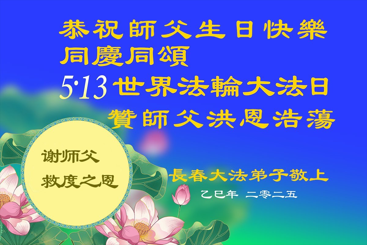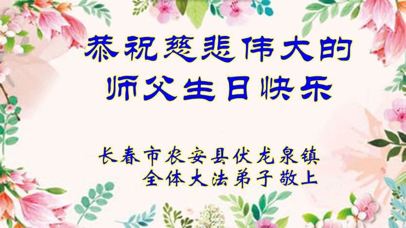 【明慧网二零二五年五月十日】 吉林省长春市农安县伏龙泉镇全体大法弟子恭祝慈悲伟大的师父生日快乐!敬贺世界法轮大法日!