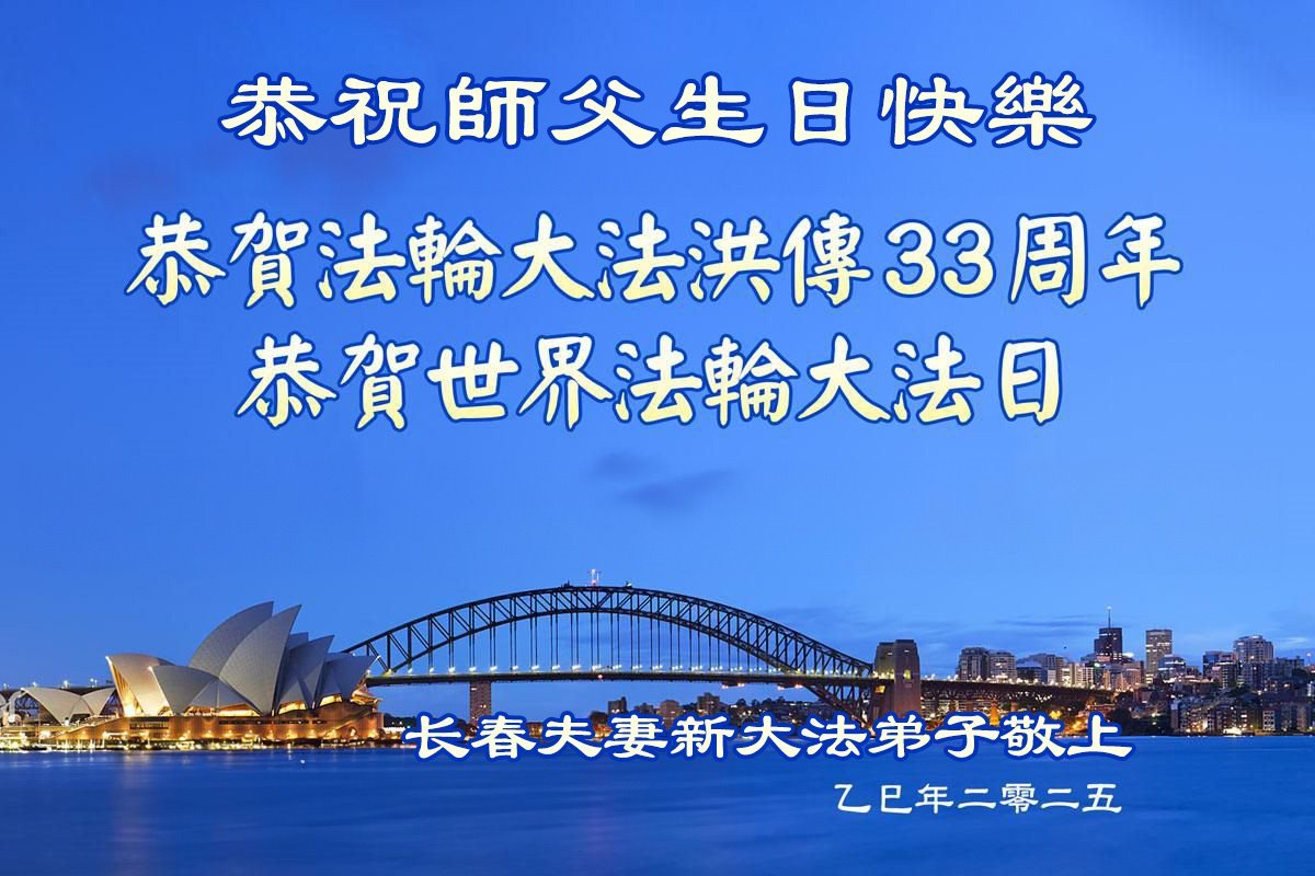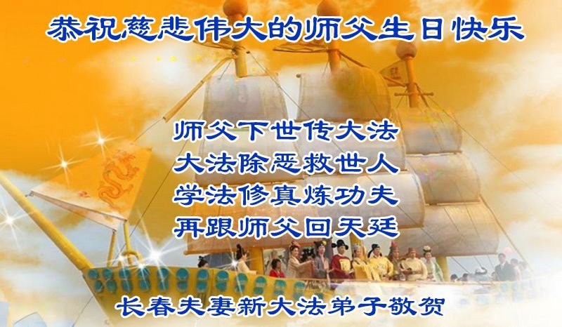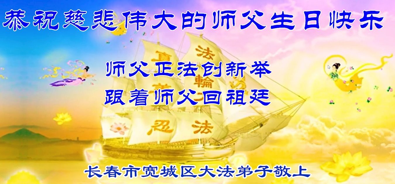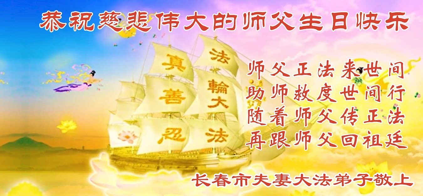 恭祝慈悲伟大的师父华诞暨世界法轮大法日! 吉林省长春市富锋镇三位大法弟子敬上 吉林省长春市净月区夫妻大法弟子恭祝慈悲伟大的师父华诞暨世界法轮大法日!