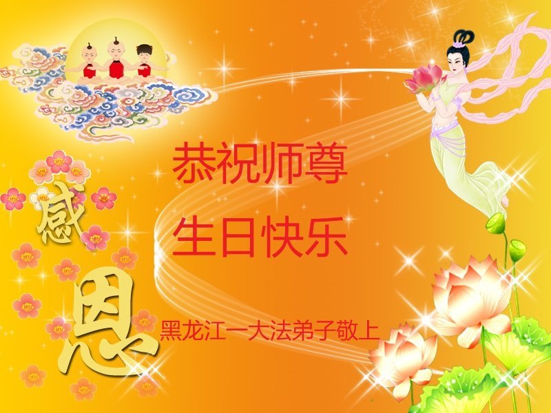 恭祝师父生日快乐!恭贺世界法轮大法日! 黑龙江省鹤岗市三人大法弟子敬上 黑龙江省牡丹江市一大法弟子恭贺世界法轮大法日暨师尊华诞!