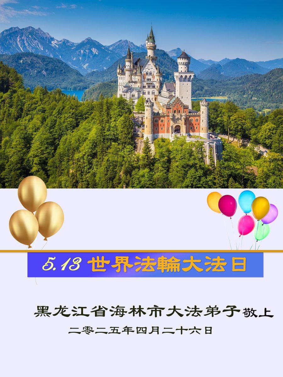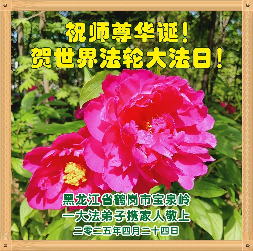 黑龙江省海林市大法弟子敬上 二零二五年四月二十六日 黑龙江省牡丹江市海林市大法弟子恭贺世界法轮大法日暨师尊生日快乐!