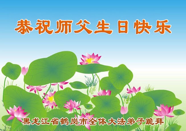 恭祝师父生日快乐!恭贺世界法轮大法日! 黑龙江省鹤岗市全体大法弟子敬上 黑龙江省鹤岗市一大法弟子恭祝师父生日快乐!恭贺世界法轮大法日!
