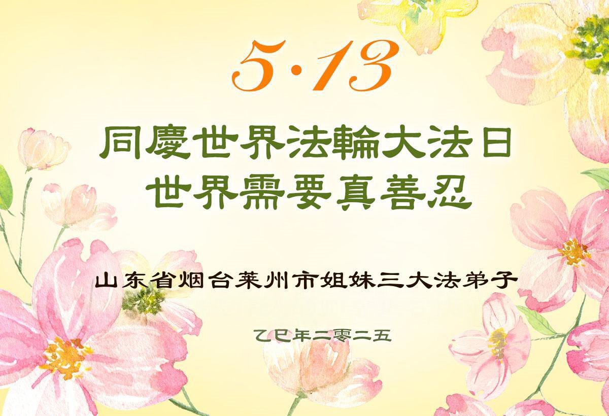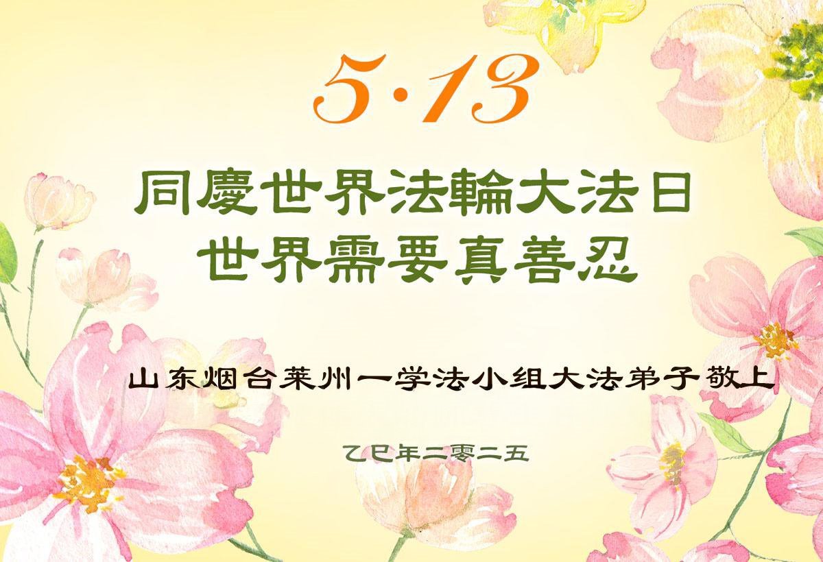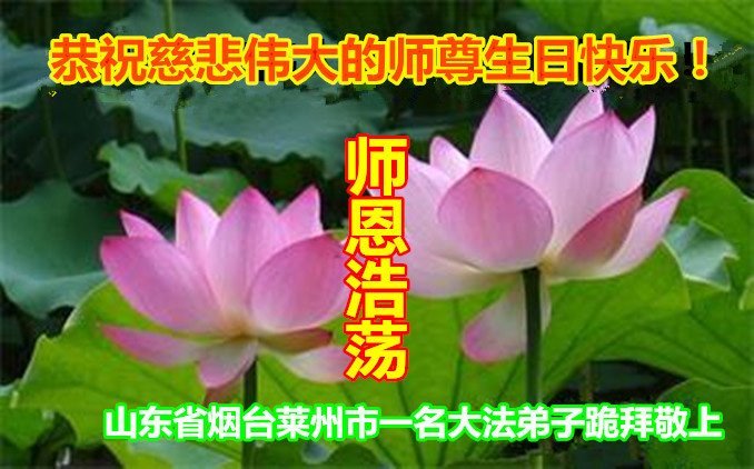 山东省烟台市莱州市一名大法弟子恭贺世界法轮大法日!恭祝慈悲伟大的师尊生日快乐!