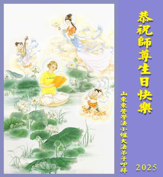 敬贺世界法轮大法日! 山东冠县大法弟子敬上 二零二五年四月二十五日 山东省东营市大法弟子恭祝慈悲伟大的师尊生日快乐!恭贺世界法轮大法日!