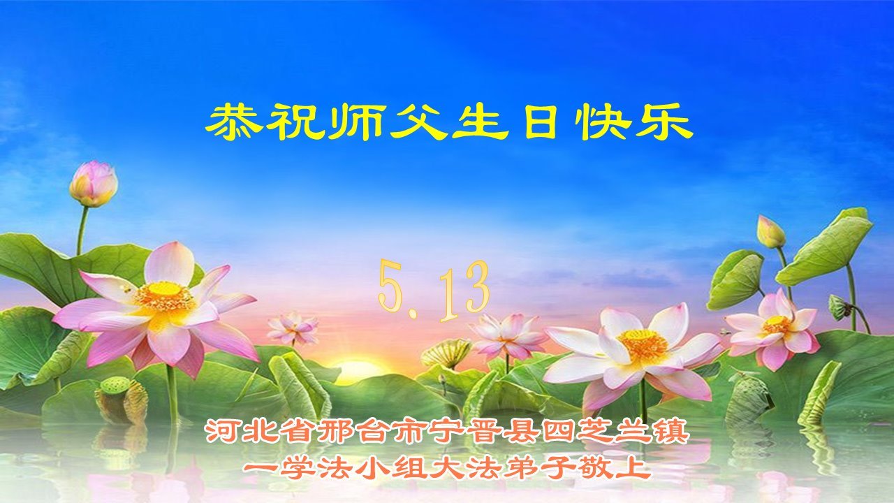 河北省邢台市宁晋县四芝兰镇学法小组大法弟子恭贺世界法轮大法日暨敬祝师父生日快乐!