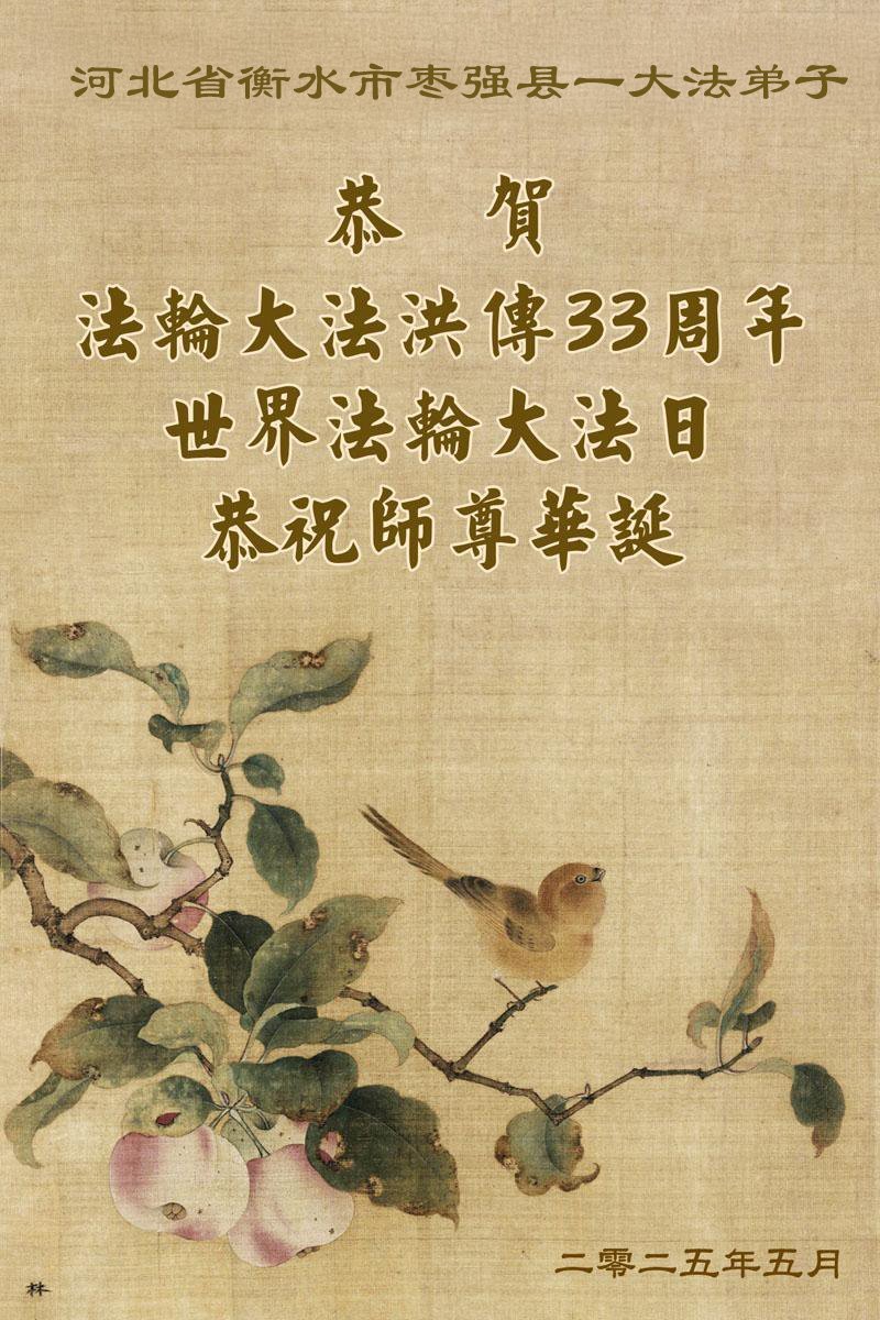 河北省衡水市枣强县一大法弟子恭贺世界法轮大法日!敬祝师尊生日快乐!