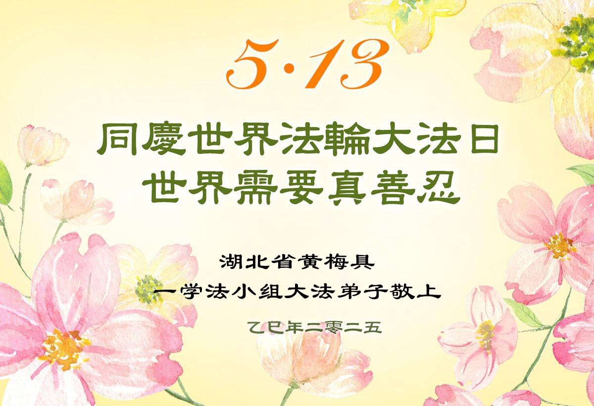 湖北省黄冈市黄梅县孔垄镇大法弟子恭贺世界法轮大法日暨师父生日快乐!