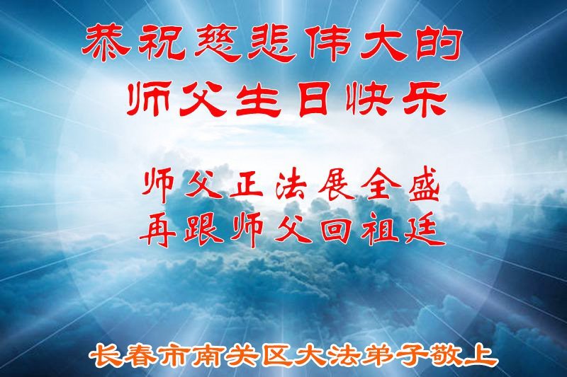恭祝慈悲伟大的师父生日快乐!恭贺世界法轮大法日! 吉林省长春大法弟子敬上 吉林省长春市南关区大法弟子恭祝慈悲伟大的师父生日快乐!恭贺世界法轮大法日!