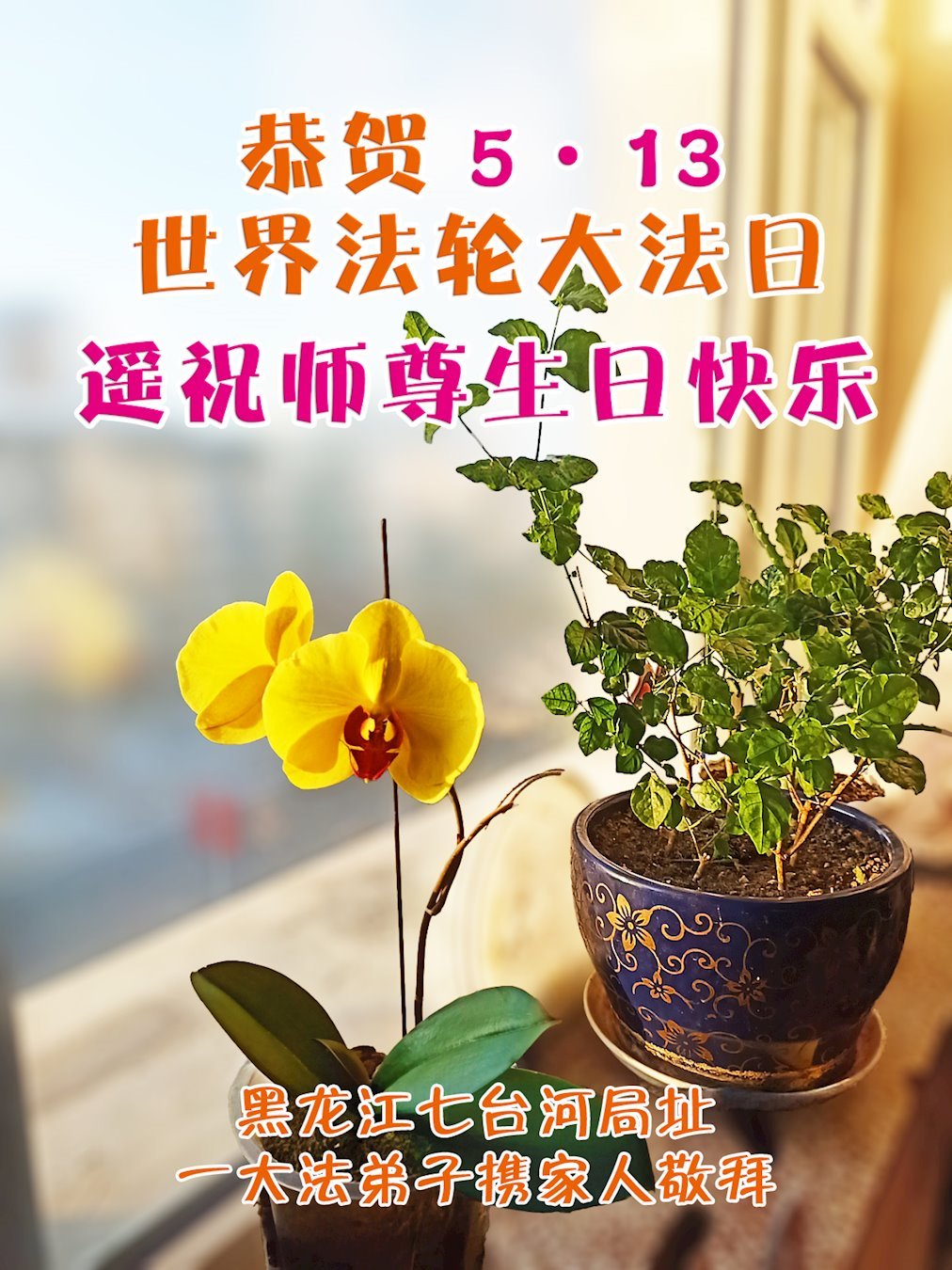 黑龙江省七台河市一家大法弟子恭贺世界法轮大法日!
