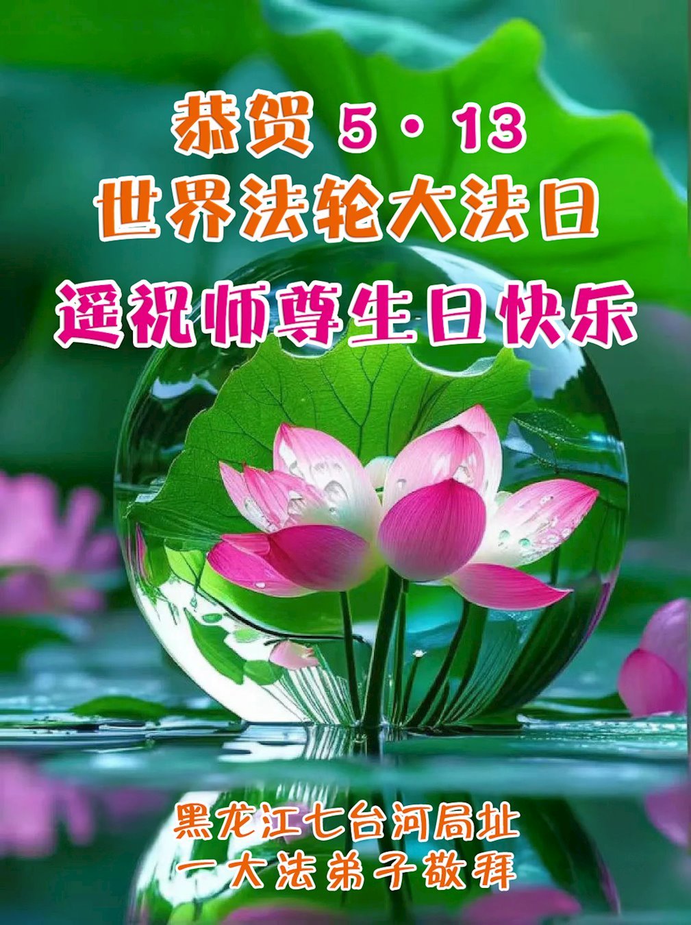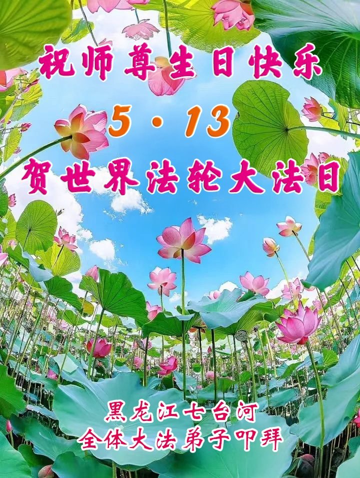 恭贺世界法轮大法日! 恭祝师尊生日快乐! 黑龙江省七台河市总院小区大法弟子敬上 二零二五年四月十九日 吉林省长春榆树市和黑龙江省的姐妹俩大法弟子恭贺世界法轮大法日暨师尊华诞!