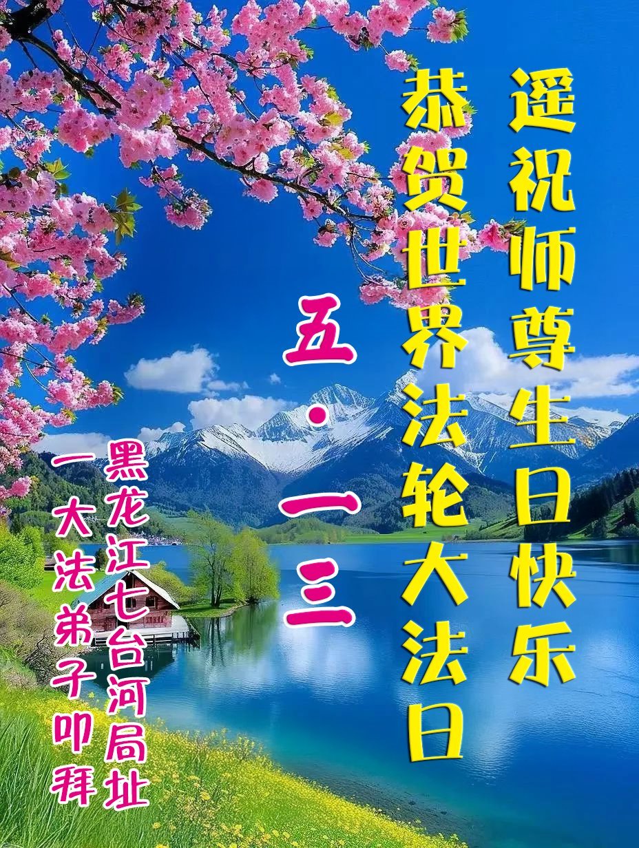 恭祝师尊生日快乐!恭贺世界法轮大法日! 黑龙江省七台河全体大法弟子敬上 黑龙江省七台河市一大法弟子恭贺世界法轮大法日!恭祝师父生日快乐!