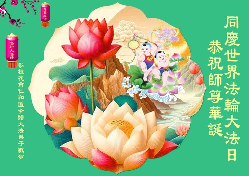恭贺法轮大法洪传33周年! 恭贺世界法轮大法日! 恭祝慈悲伟大的师尊华诞! 四川攀枝花市西区全体大法弟子敬上 四川攀枝花市盐边县大法弟子恭贺世界法轮大法日暨师尊华诞!