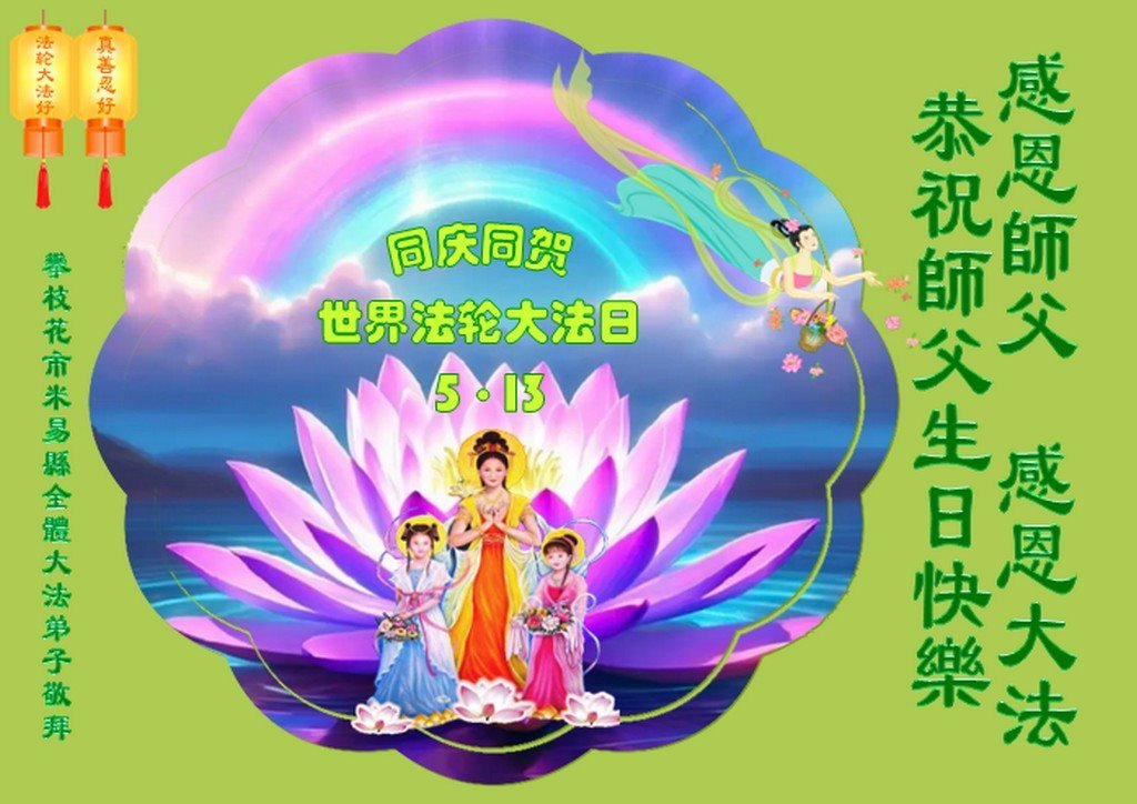 四川省米易县大法弟子敬上 二零二五年四月二十日 四川攀枝花市米易县大法弟子恭贺世界法轮大法日暨师尊生日快乐!