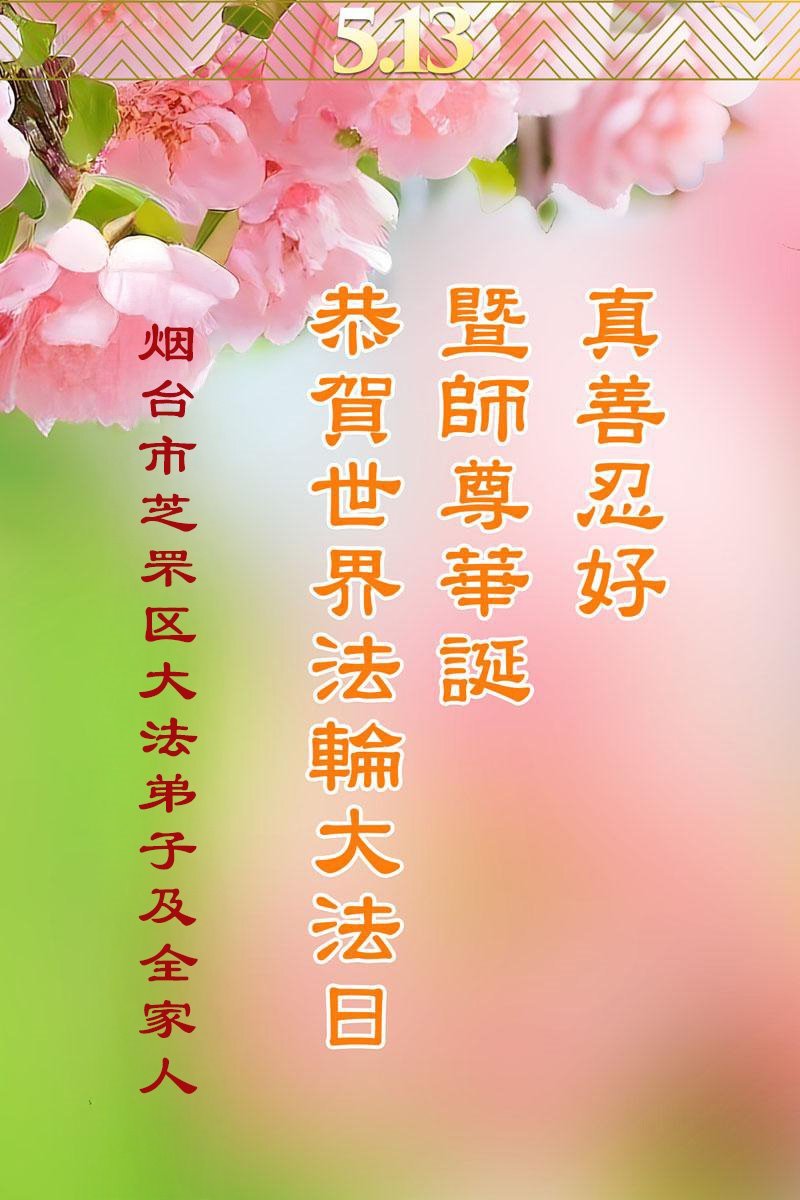 山东省烟台市芝罘区大法弟子全家人恭贺世界法轮大法日暨师尊华诞!