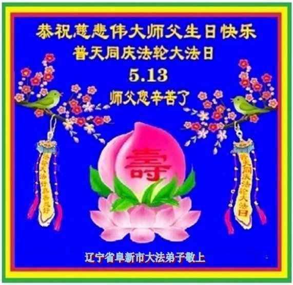 【明慧网二零二五年五月十日】 辽宁皁新市大法弟子恭贺世界法轮大法日暨敬祝慈悲伟大的师尊生日快乐!