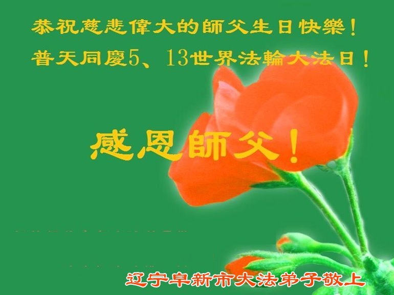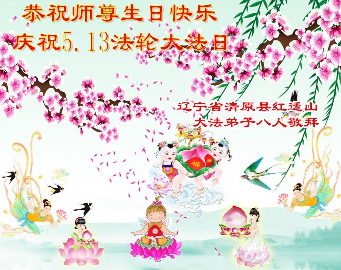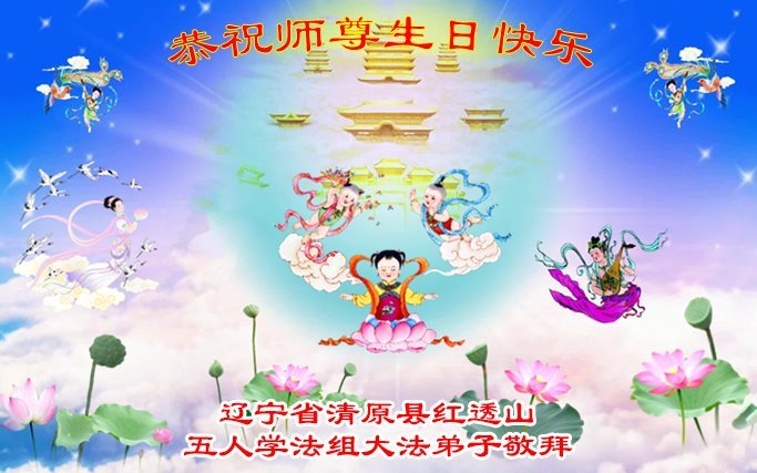 恭祝师尊生日快乐!恭贺世界法轮大法日! 辽宁省清原县红透山四人学法小组大法弟子敬上 辽宁省抚顺市清原县红透山大法弟子七人学法小组恭贺世界法轮大法日暨敬祝师尊生日快乐!