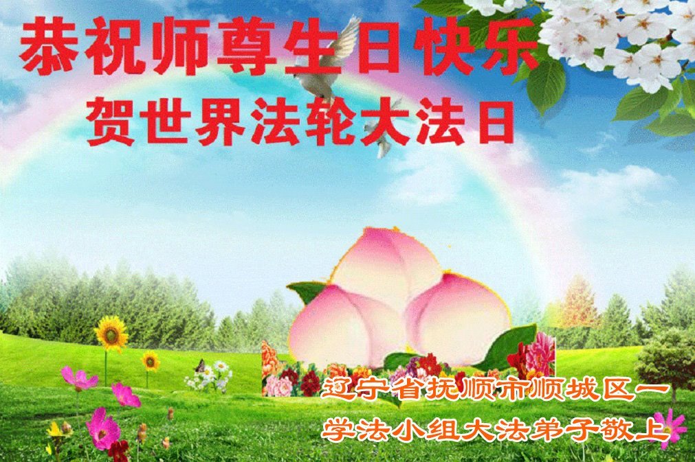 辽宁省抚顺市顺城区一学法小组大法弟子恭贺世界法轮大法日暨敬祝师尊华诞!