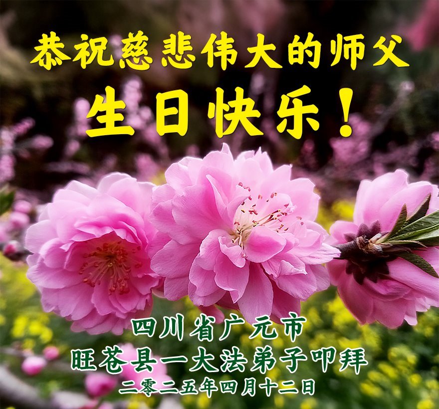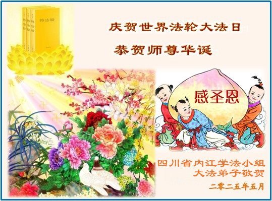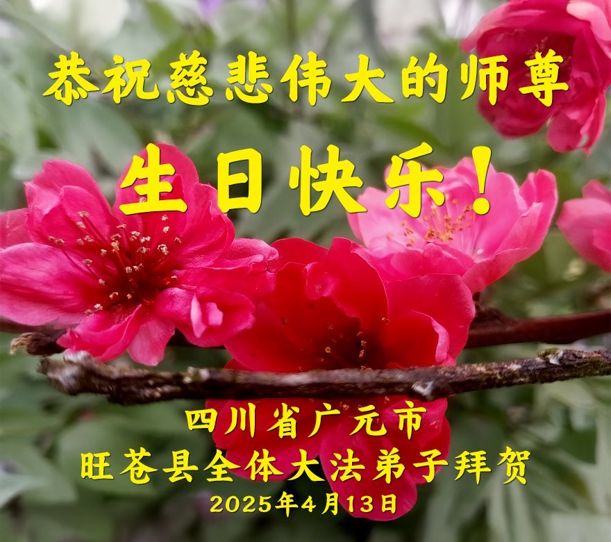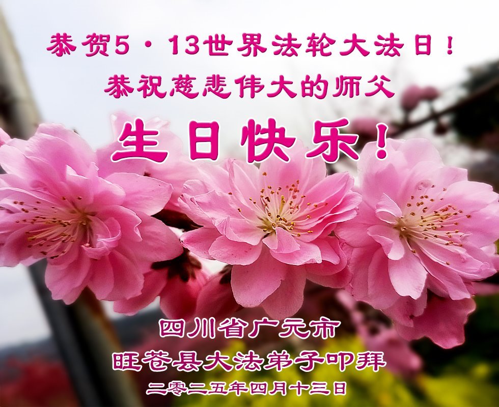 【明慧网二零二五年五月十日】 四川省广元市旺苍县一大法弟子恭贺世界法轮大法日暨师尊生日快乐!