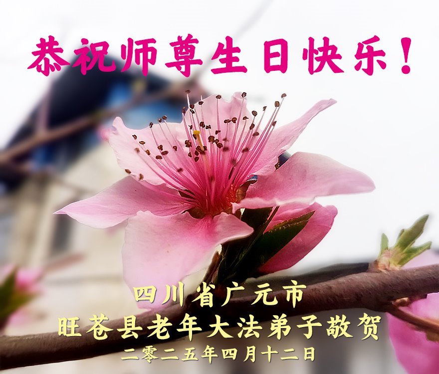 恭贺世界法轮大法日!恭祝师父生日快乐! 在这春暖花开的季节里,迎来了师父的生日,迎来了5月13世界法轮大法日,在这伟大的日子里,弟子无限感恩师父慈悲苦度,把法轮大法传给了我们,把我从迷茫无助中唤醒,使深陷在名利、病痛中苦苦挣扎的我,看到了生命的希望,明白了人生的真正义意,那就是返本归真。弟子在此遥祝师父生日快乐! 四川省广元市旺苍县一大法弟子敬上 四川省广元市旺苍县老年大法弟子恭贺世界法轮大法日暨师尊生日快乐!
