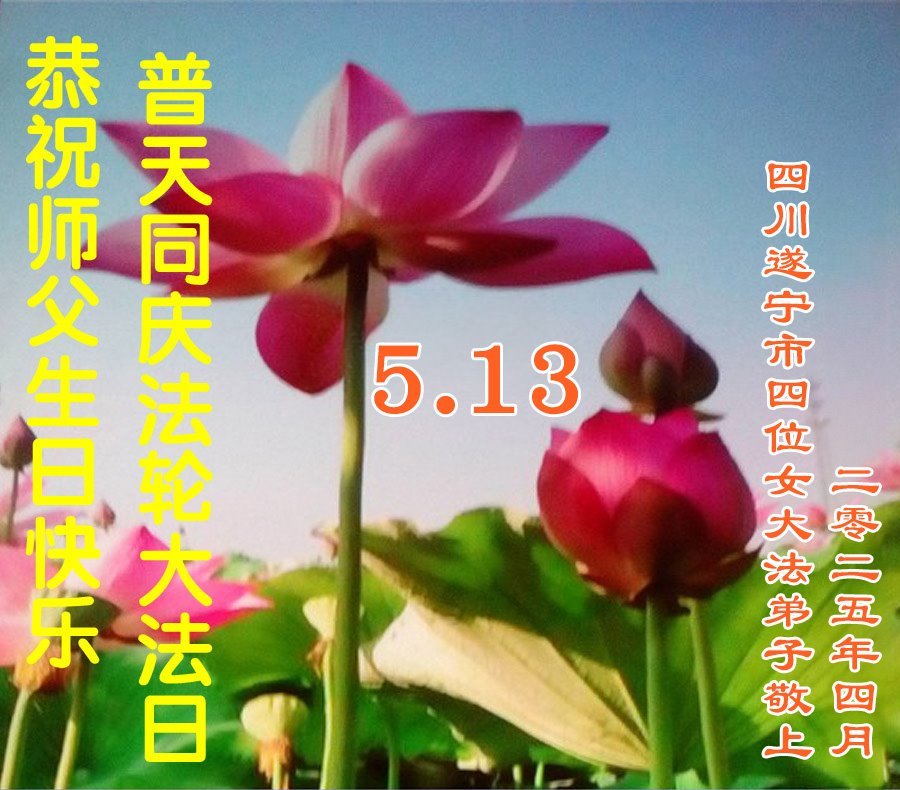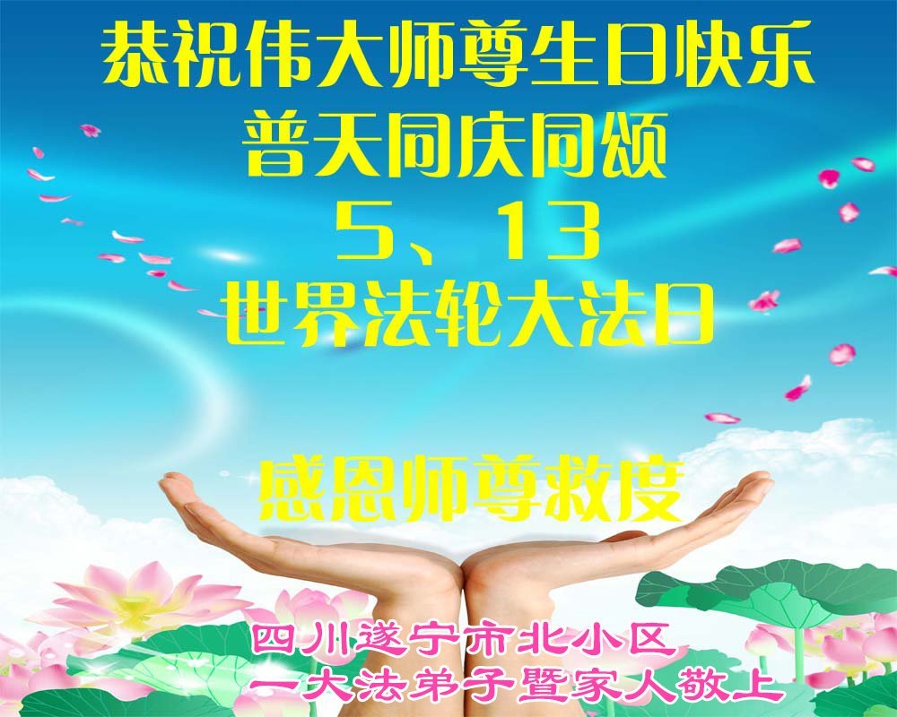 四川省遂宁市北小区一大法弟子和家人恭贺5.13世界法轮大法日!恭祝师父生日快乐!