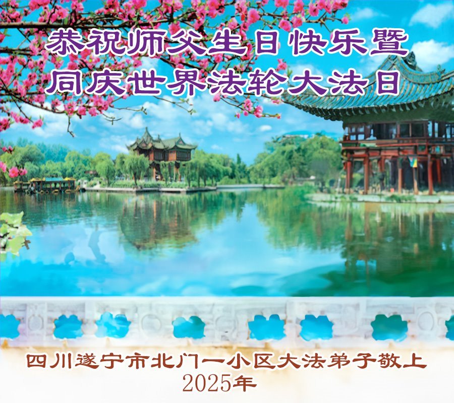 四川省遂宁市北门一小区大法弟子恭贺世界法轮大法日暨师父生日快乐!