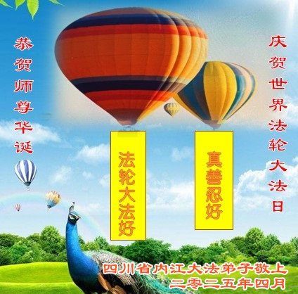庆贺世界法轮大法日!恭祝师尊华诞!感恩师尊慈悲救度! 四川省内江市学法小组大法弟子敬上 四川省内江市大法弟子庆贺世界法轮大法日!恭祝师尊华诞!