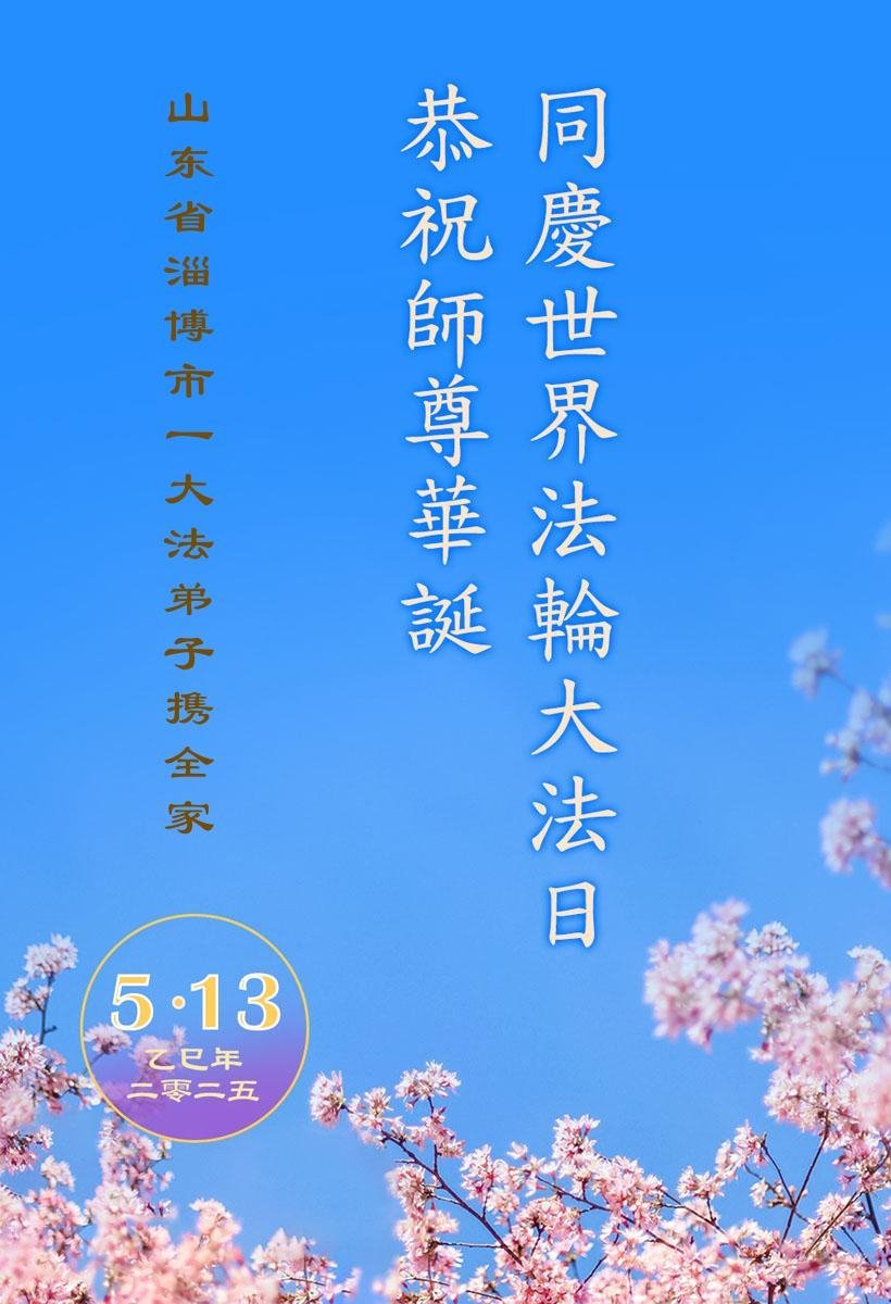 在这普天同庆的日子里,盼师尊早日回中国大陆!盼跟师尊相见的那一刻!弟子唯有精進实修,让师父少一份操劳,多一些欣慰。跪拜师尊!跪迎师尊! 山东梁山大法弟子敬上 2025年4月24日 山东省淄博市三家夫妻大法弟子恭贺世界法轮大法日!恭祝师父生日快乐!