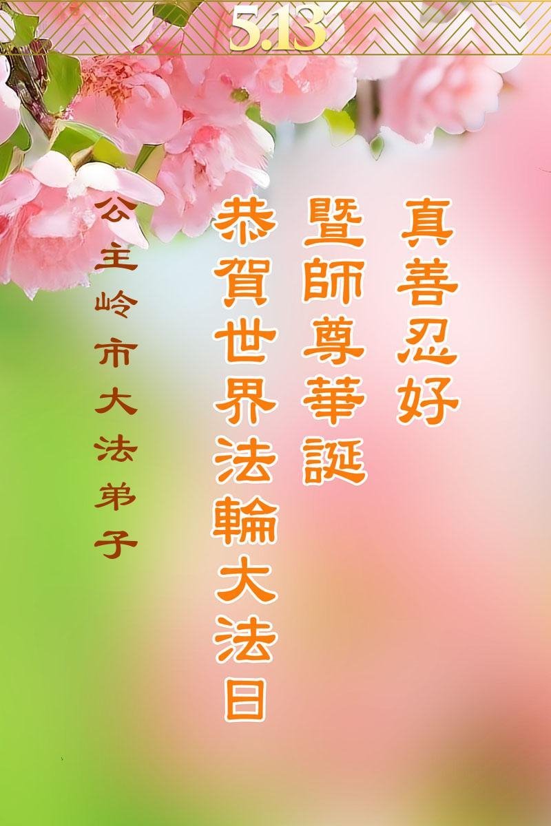 吉林省长春市公主岭市大法弟子恭贺世界法轮大法日!恭祝师父生日快乐!
