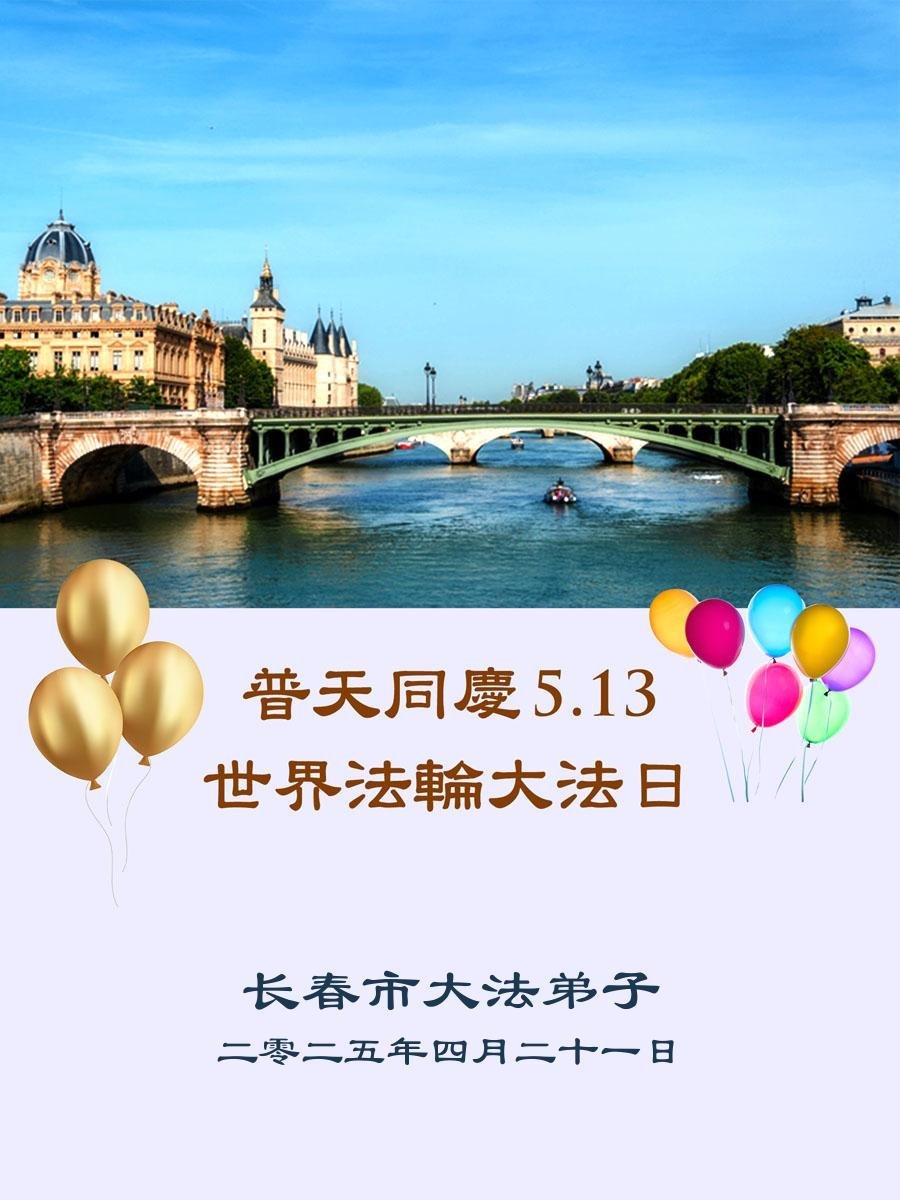 普天同庆、同祝、同颂513世界法轮大法日,师恩浩荡照寰宇! 吉林长春一大法弟子敬上 二零二五年四月十八日 吉林省长春大法弟子恭贺世界法轮大法日!