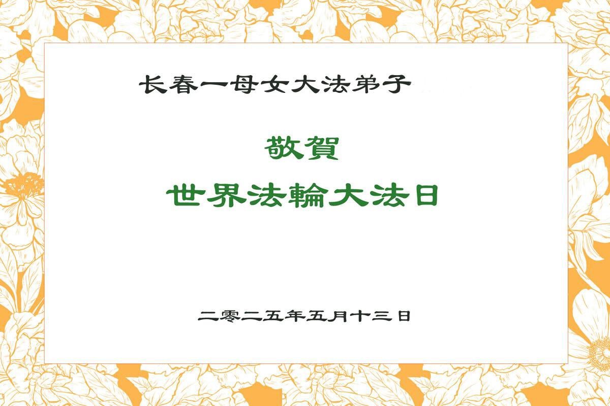 长春榆树市大法弟子敬上 二零二五年四月二十日 吉林长春榆树市大法弟子恭贺世界法轮大法日暨师尊华诞!