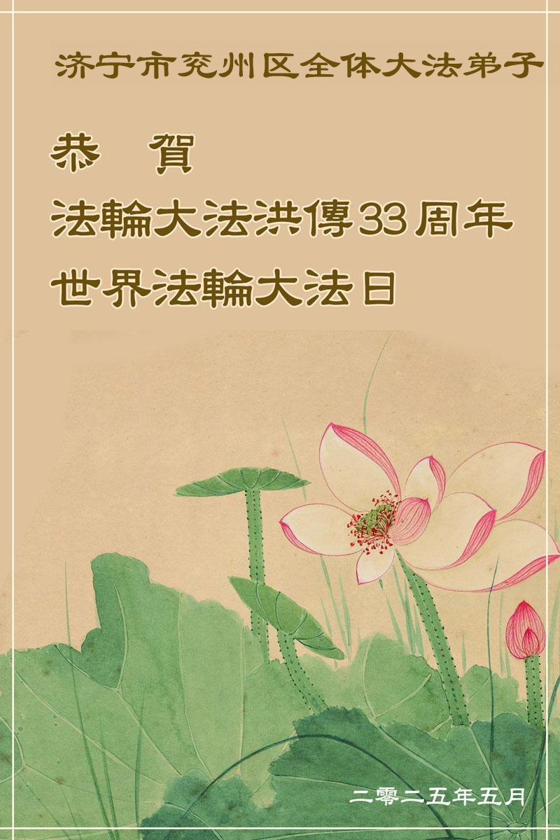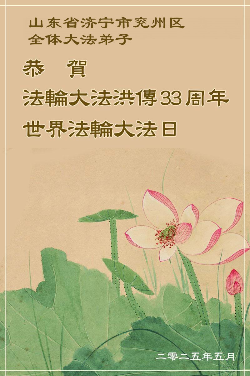 山东省济宁市兖州区全体大法弟子恭贺法轮大法洪传33周年、世界法轮大法日!