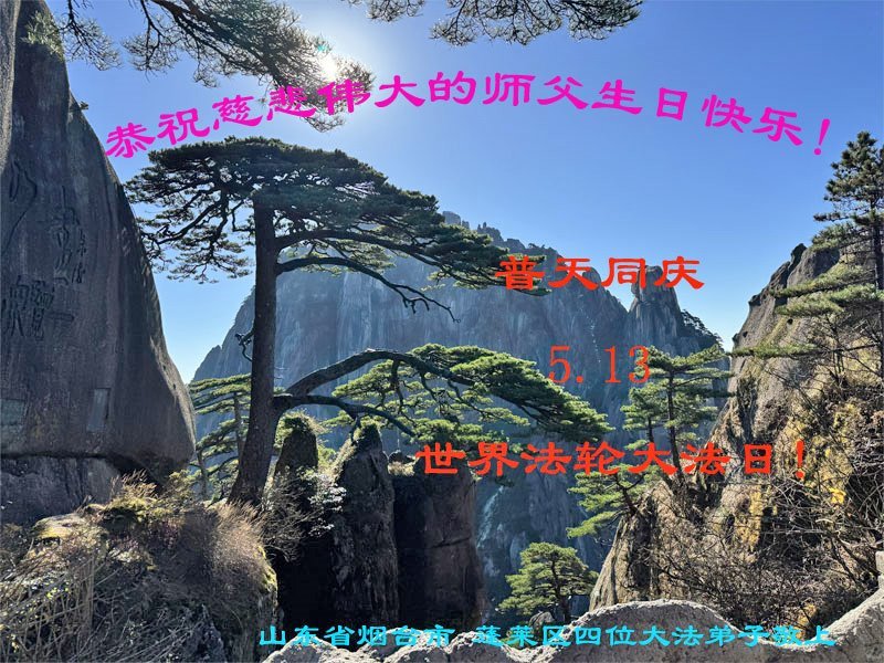 恭贺世界法轮大法日! 恭祝师尊生日快乐! 山东烟台栖霞市一大法弟子携家人及亲友敬上 山东烟台莱阳大法弟子恭贺5.13世界法轮大法日暨恭祝师尊华诞!