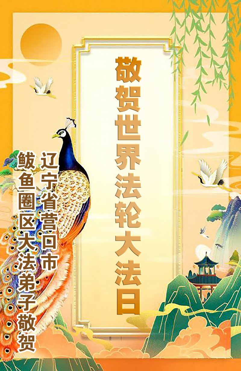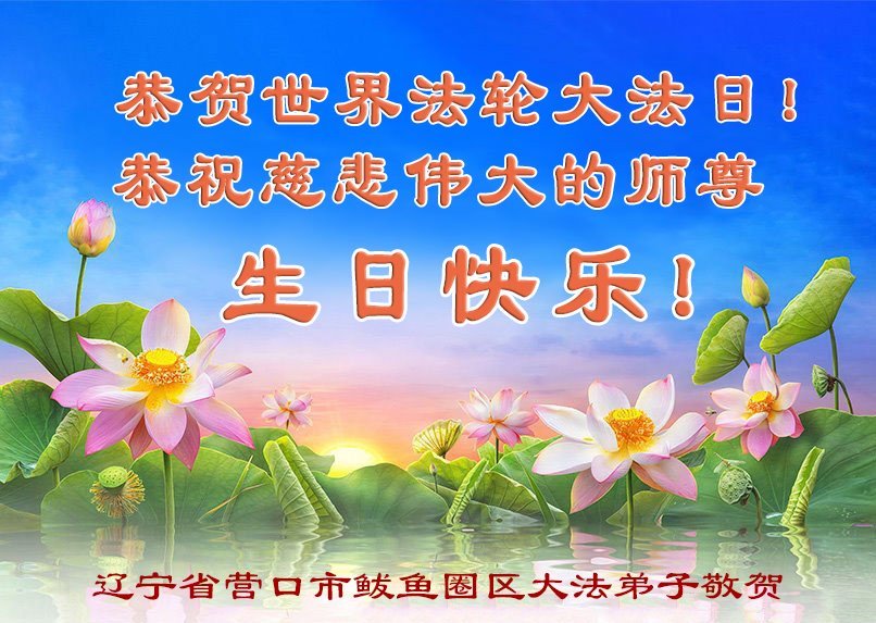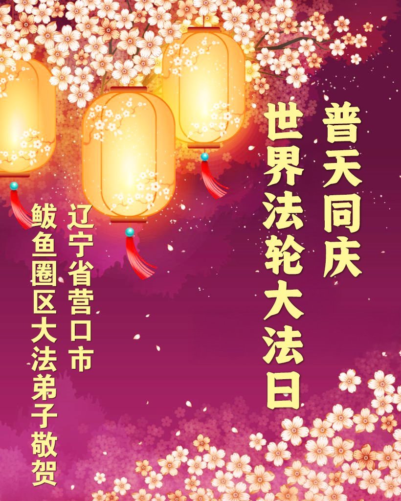 恭贺世界法轮大法日! 恭祝慈悲伟大的师尊生日快乐! 辽宁省营口市鲅鱼圈区大法弟子敬上 辽宁省抚顺市一夫妻大法弟子恭贺世界法轮大法日暨师父生日快乐!