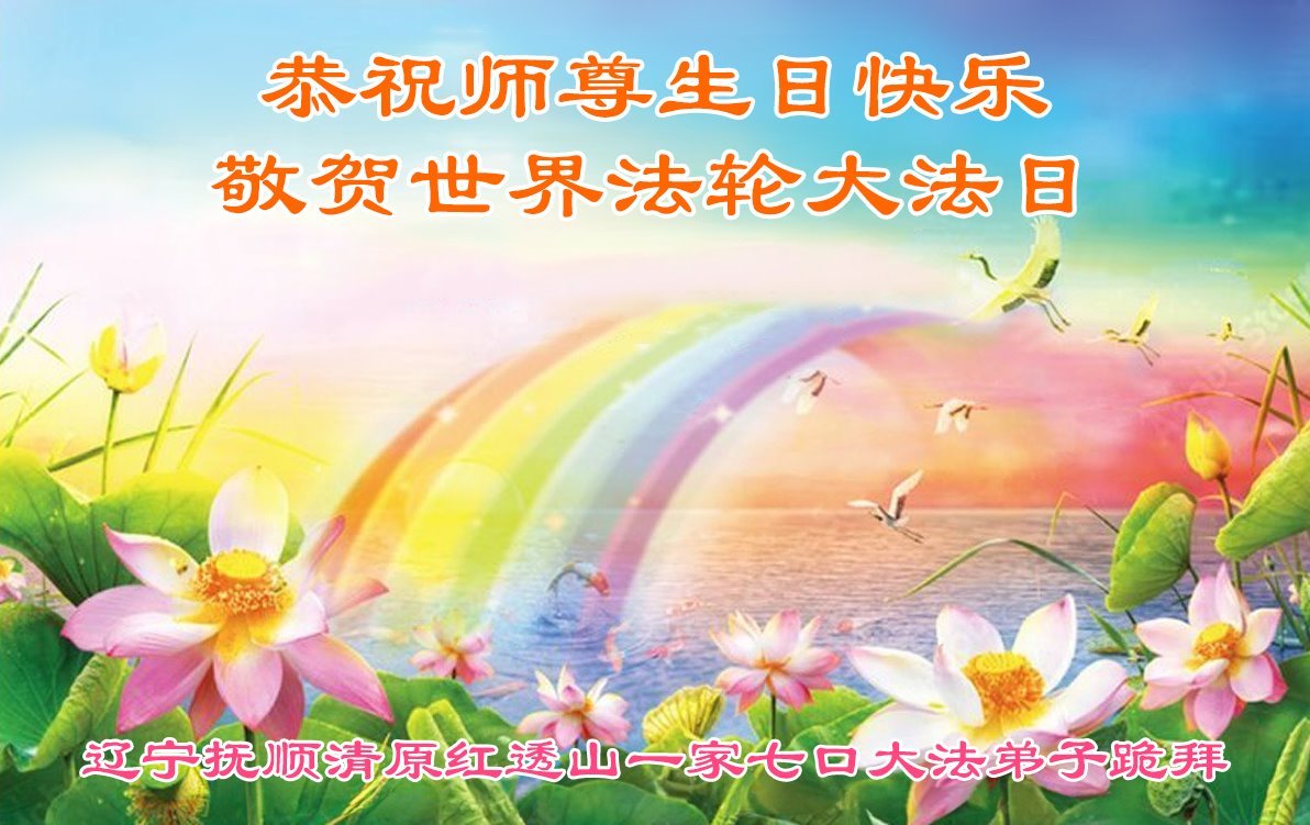 敬贺世界法轮大法日! 恭祝师尊生日快乐! 辽宁省抚顺市清原县红透山镇一家七口大法弟子跪拜 辽宁省铁岭市调兵山市一学法小组大法弟子恭贺世界法轮大法日暨师尊华诞!
