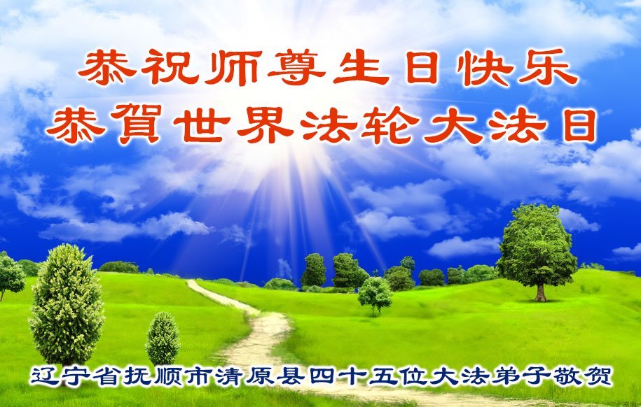 【明慧网二零二五年五月十日】 辽宁省抚顺市清原县四十五位大法弟子恭贺世界法轮大法日暨师尊生日快乐!