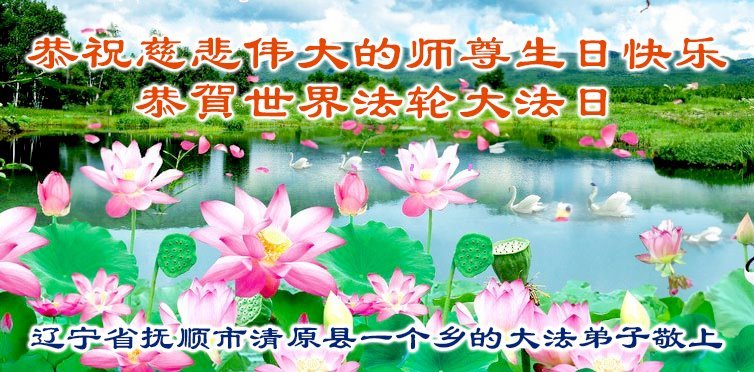 普天同庆世界法轮大法日!恭祝师尊华诞快乐!感恩师尊慈悲苦度!师尊您辛苦了! 辽宁省抚顺市新宾县苇子峪镇姑嫂大法弟子敬上 辽宁省抚顺市清原县红透山镇一学法组大法弟子恭贺世界法轮大法日暨师父生日快乐!