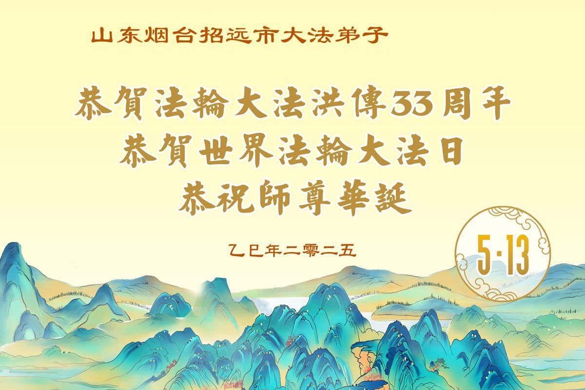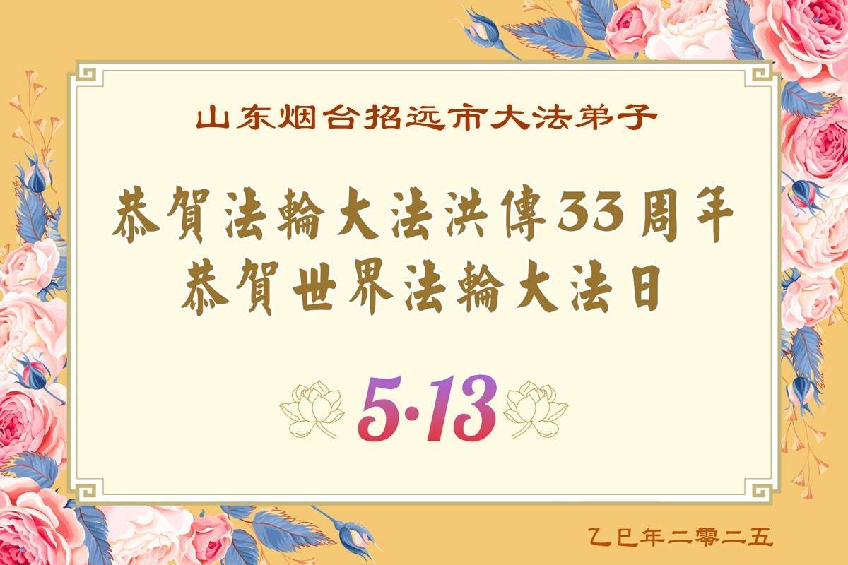 山东省烟台市招远市大法弟子恭贺世界法轮大法日暨师父生日快乐!