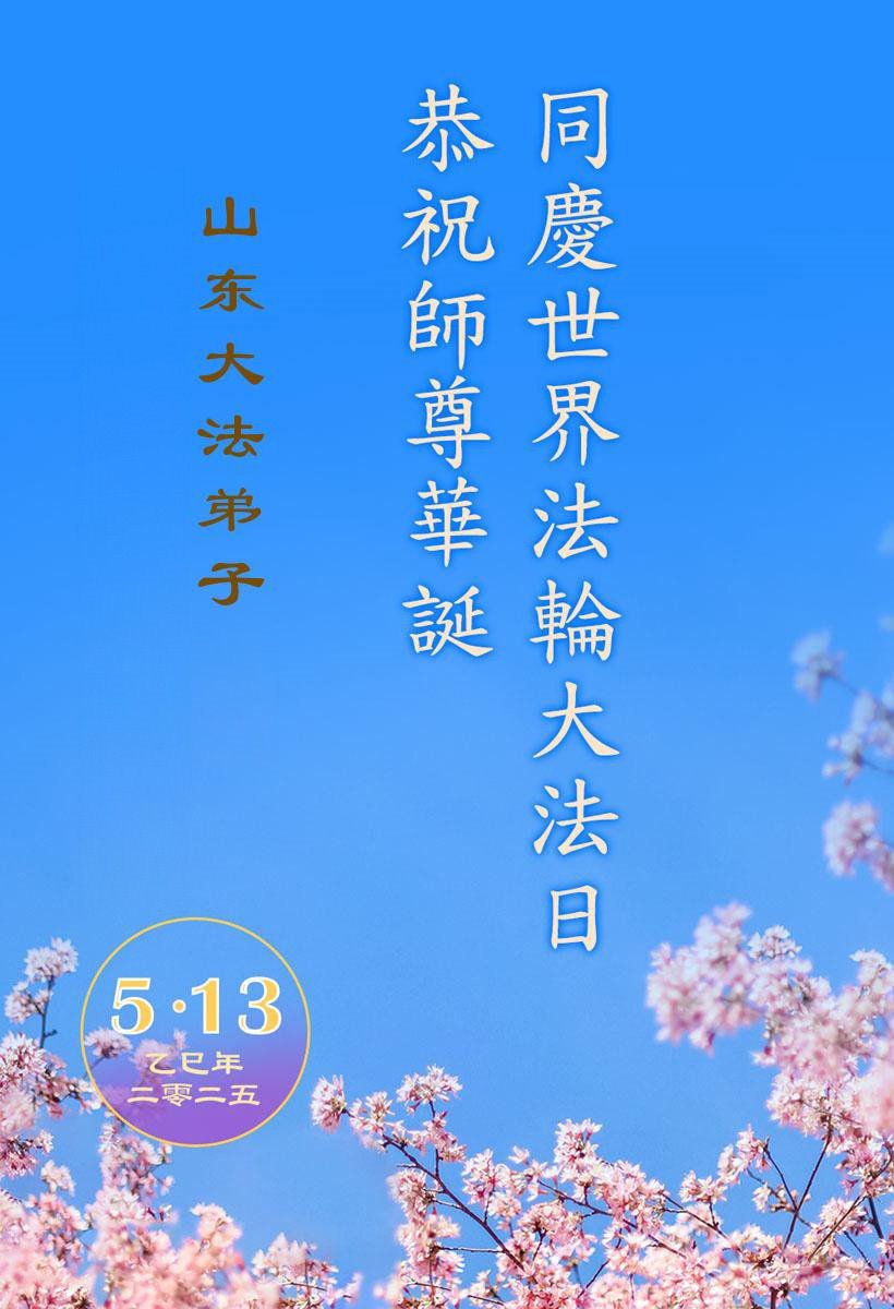 【明慧网二零二五年五月十日】 山东省济宁市邹城市大法弟子恭贺世界法轮大法日暨师尊华诞!