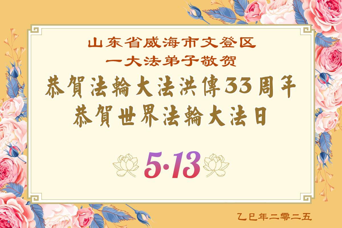 山东省威海市文登区一大法弟子恭贺世界法轮大法日!