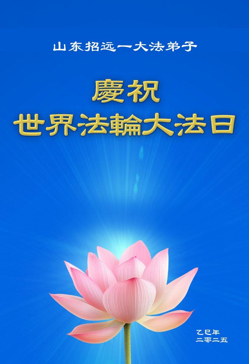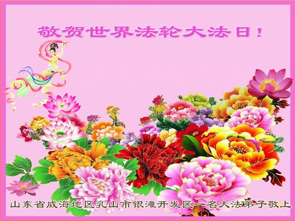 法轮大法好!真善忍好! 山东省威海市乳山市银滩开发区一名大法弟子敬上 山东省烟台市招远市一大法弟子庆贺世界法轮大法日!恭祝慈悲伟大的师尊生日快乐!