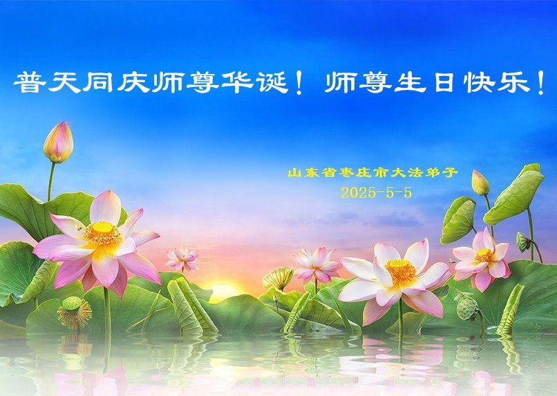 普天同庆法轮大法洪传三十三周年! 恭祝师尊生日快乐! 山东省枣庄市大法弟子敬上 2025年5月5日 山东省东营市一大法弟子恭贺世界法轮大法日!恭祝师尊生日快乐!