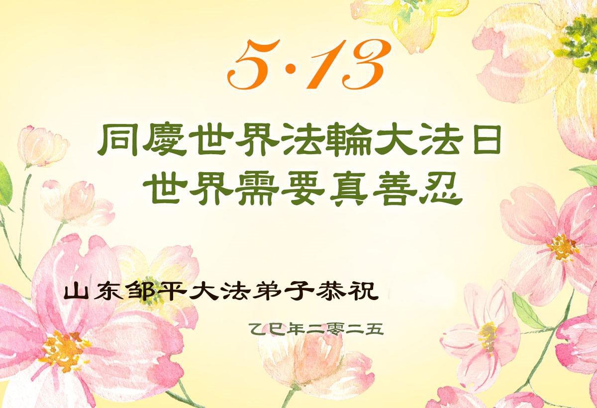 时值第26届“世界法轮大法日”和慈悲伟大的师尊华诞之际,弟子敬以衷心的祝贺。恭祝师父生日快乐! 山东省烟台开发区一学法小组大法弟子敬上 二零二五年五月四日 山东省邹平大法弟子恭祝慈悲伟大的师父生日快乐!恭贺世界法轮大法日!