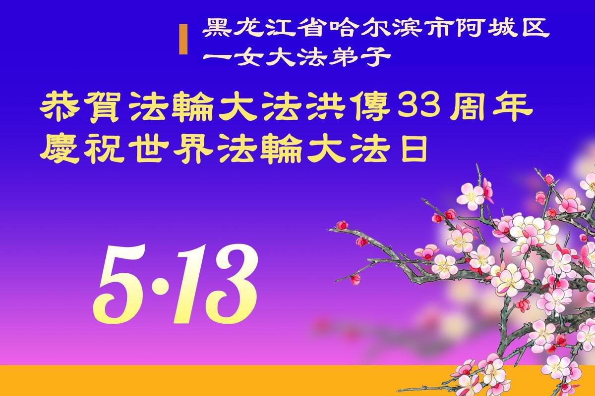 黑龙江省哈尔滨市阿城区一女大法弟子恭贺世界法轮大法日!