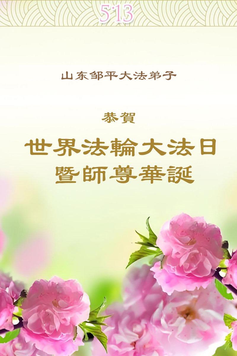 【明慧网二零二五年五月十日】 山东省邹平大法弟子恭祝慈悲伟大的师父生日快乐!恭贺世界法轮大法日!