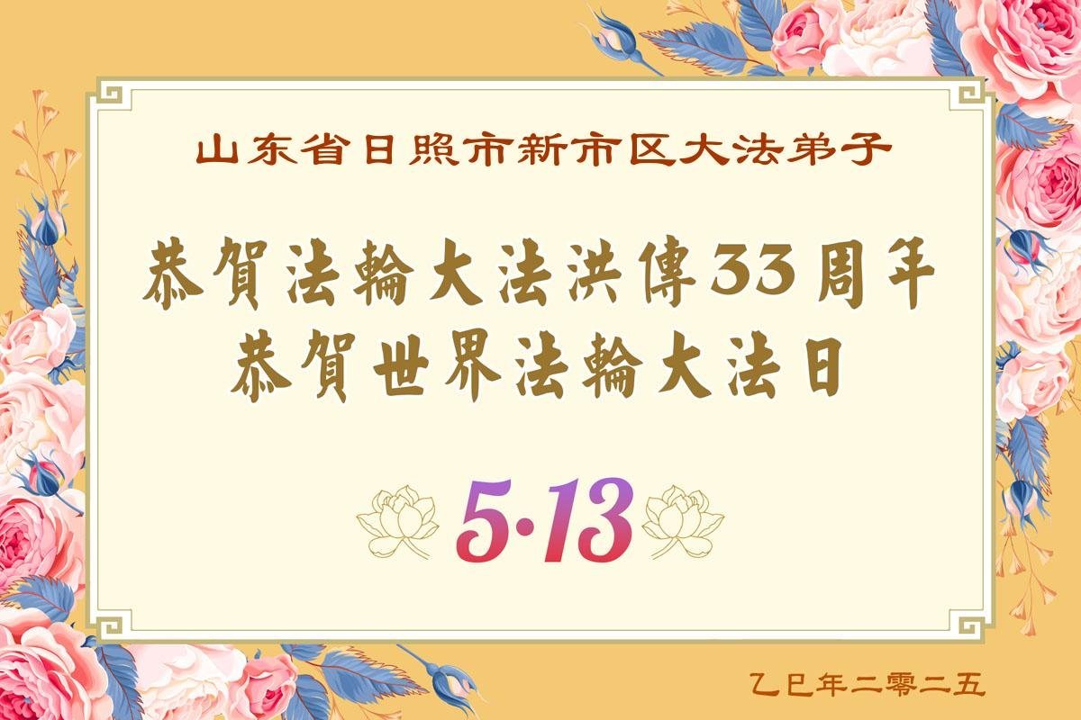 祝贺世界法轮大法日!感恩师尊的救度之恩! 山东省聊城回民一学法小组大法弟子敬上 二零二五年五月五日 山东省烟台市海阳市大法弟子恭贺世界法轮大法日暨师尊华诞!