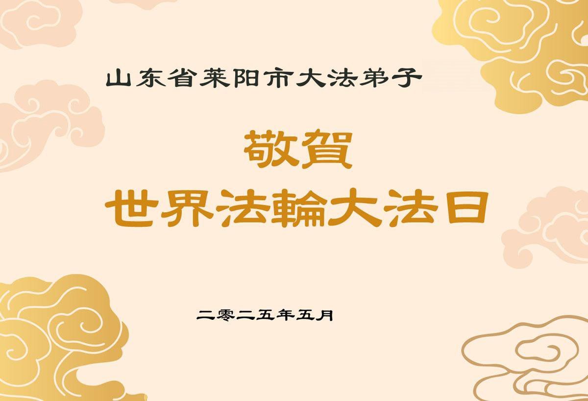 恭祝师父生日快乐!恭贺世界法轮大法日!弟子一定精進实修,去掉一切人心,做好三件事,圆满随师还!师父辛苦了! 山东省烟台市莱阳市一大法弟子敬上 二零二五年五月五日 山东省聊城大法弟子恭贺世界法轮大法日!
