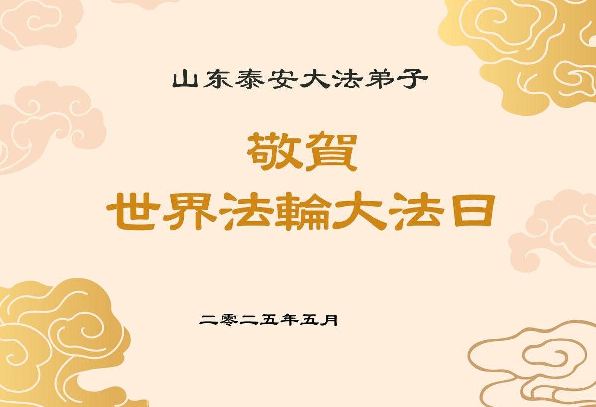 法轮大法好!真善忍好! 山东栖霞一学法小组大法弟子敬上 二零二五年五月五日 山东泰安大法弟子恭贺世界法轮大法日暨敬祝师尊华诞!